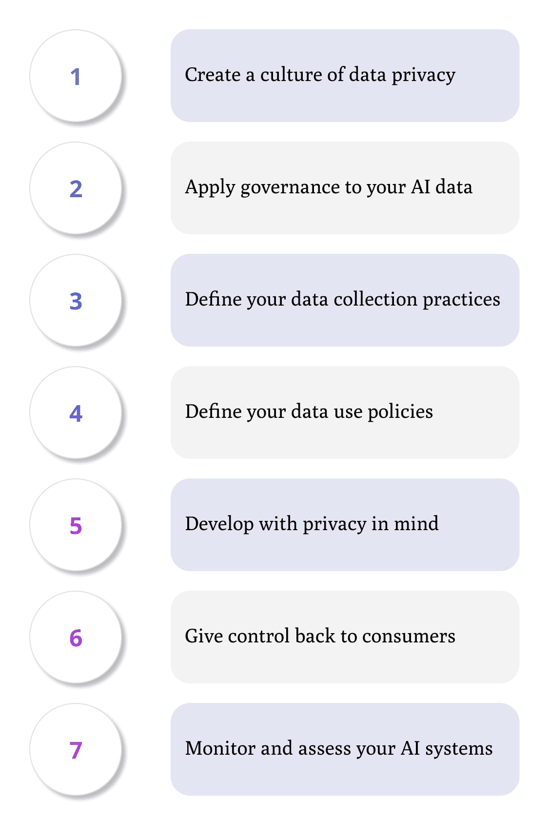 Organizations that hope to achieve responsible AI must confront the issue of privacy head on. To help with this process, we’ve provided seven guidelines for addressing privacy in AI initiatives. This is by no means an exhaustive list, nor will each organization approach privacy in the same way. But these guidelines can provide a good starting point for learning ways to protect personal information and deliver responsible AI.